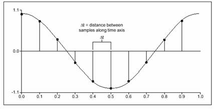 這個(gè)數(shù)列被稱為信號x(t)的數(shù)字化顯示或者采樣顯示。注意這個(gè)數(shù)列中僅僅用下標(biāo)變量編制索引,而不含有任何關(guān)于采樣率(或Δt)的信息。所以如果只知道該信號的采樣值,并不能知道它的采樣率,缺少了時(shí)間尺度,也不可能知道信號x(t)的頻率。