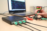 MSO_29XX系列帶有2個(gè)模擬示波器通道以及16或32個(gè)邏輯通道,單次最高采樣率1Gsps,模擬帶寬170MHz。每通道2M 樣點(diǎn)的存儲(chǔ)深度,觸發(fā)方式除了常見的沿,寬度(毛刺),電平外,還有脈沖計(jì)數(shù)和12b長的字以及SPI,I2C觸發(fā)方式,并支持SPI,I2C的解碼。FFT的頻譜分析帶寬高達(dá)500MHz。由于是基于USB的儀器,利用應(yīng)用軟件可以非常方便的利用PC的大屏幕顯示器進(jìn)行顯示。另外對(duì)于需要定制化軟件的用戶還提供了DLL和LabView驅(qū)動(dòng)。