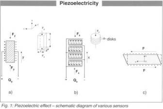 壓電傳感器由壓電材料和封裝材料組成。“壓電”的意思是當(dāng)對(duì)負(fù)載施加一個(gè)力時(shí),傳感器將會(huì)產(chǎn)生同施加力成比例的電荷。天然石英晶體是非常理想的壓電材料,但現(xiàn)在石英晶體可以在高溫高壓下進(jìn)行人工合成。其他壓電材料也有不同的特殊應(yīng)用。石英晶體在傳感器內(nèi)不同的排列將會(huì)產(chǎn)生不同的效果。這個(gè)效果可以通過(guò)石英晶體的不同切型來(lái)獲得。