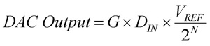 在大多數(shù)數(shù)字模擬轉(zhuǎn)換器中,增益(G)為1,這樣可將方程式簡化為VREF/2N。在理想的數(shù)字模擬轉(zhuǎn)換器設(shè)計中,每增加一個位,就會使輸出電壓增加一個LSB。在本范例中,一個LSB的值是0.3125伏特,這是數(shù)字模擬轉(zhuǎn)換器可解析的最小增量。將LSB值與數(shù)據(jù)輸入代碼(DIN)相乘,即可將基本傳輸函數(shù)以以下的方程式2表示: