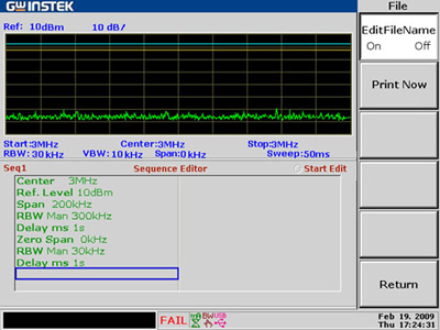 然而,并不須在產(chǎn)在線用兩臺(tái)頻譜分析儀先后做測試,廠商推出的頻譜分析儀為用戶提供了一套簡便實(shí)用的自動(dòng)測量系統(tǒng)(SEQ),只須從前面板設(shè)置好測量順序設(shè)定,再經(jīng)過一鍵操作,儀器會(huì)方便地單次或連續(xù)運(yùn)行不同的測量設(shè)定,抑或由使用者指令一步步地運(yùn)行整個(gè)測量步驟。