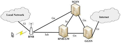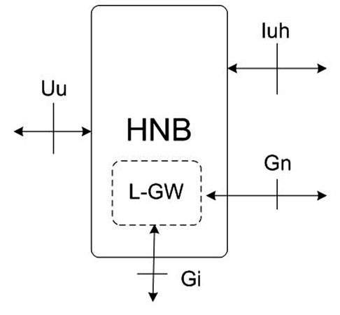 為實現(xiàn)LIPA功能,HNB除原有的Iuh接口外,另新增Gn與Gi接口,兩款新接口在通用行動通訊系統(tǒng)(UMTS)網(wǎng)絡(luò)里各有定位,如Gn系基于IP的接口,連接著整體封包無線電服務(wù)支持節(jié)點(Serving GPRS Support Node, SGSN)與GPRS網(wǎng)關(guān)支持節(jié)點(GGSN);Gi則是連接GGSN與公眾因特網(wǎng)的接口。在概念上,要支持LIPA需在Femtocell內(nèi)實作出本地GGSN的功能,3GPP將其稱為本地網(wǎng)關(guān)器(Local-Gateway, L-GW)(圖2)。
