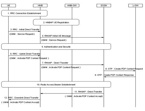 不過,這也意味著手機、HNB與SGSN之間須建立無線承載(Radio Bearer)與無線存取承載(Radio Access Bearer, RAB)用來傳送接收使用者數(shù)據(jù),方可在SGSN向手機傳送GMM Activate PDP Context Accept,手機收到此訊息后完成LIPA聯(lián)機,讓使用者可開始透過HNB存取內(nèi)部網(wǎng)絡(luò)資源。