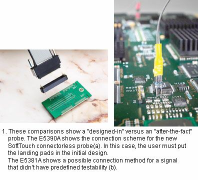 在基于連接器的探頭中包含了相互契入的連接器,而無連接器探頭則具有連接PCB上焊盤的壓縮互連(compression interconnect)(圖1a)。