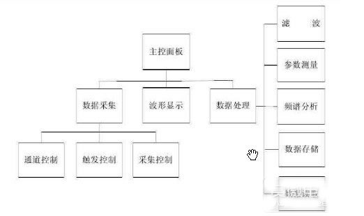 (2)USB示波器的軟件主要完成對虛擬示波器控制、顯示的設計,即對各個模塊的硬件控制,以及用戶界面的設計,虛擬示波器的整體軟件應該采用分層機構,整個控制軟件分為3層,底層物理設備的控制程序,usb設備在pc機上的驅動程序,上位pc機的人機界面軟件,控制軟件的分塊,分層設計使各層軟件相對獨立,只需考慮各層軟件的接口即可,這樣使軟件的設計、編寫較為簡單,運行更為可靠,