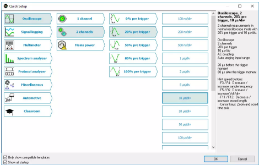 為了簡化測量設(shè)置,多通道示波器軟件包含大量快速設(shè)置,幾乎適用于任何應(yīng)用。快速設(shè)置包含特定測量的基本設(shè)置以及有關(guān)所選快速設(shè)置的附加信息,例如,如何連接HandyScope和/或附件??焖僭O(shè)置也可以包含參考信號。加載快速設(shè)置后,可以執(zhí)行特定的測量,如果需要,可以對設(shè)置進(jìn)行小的調(diào)整