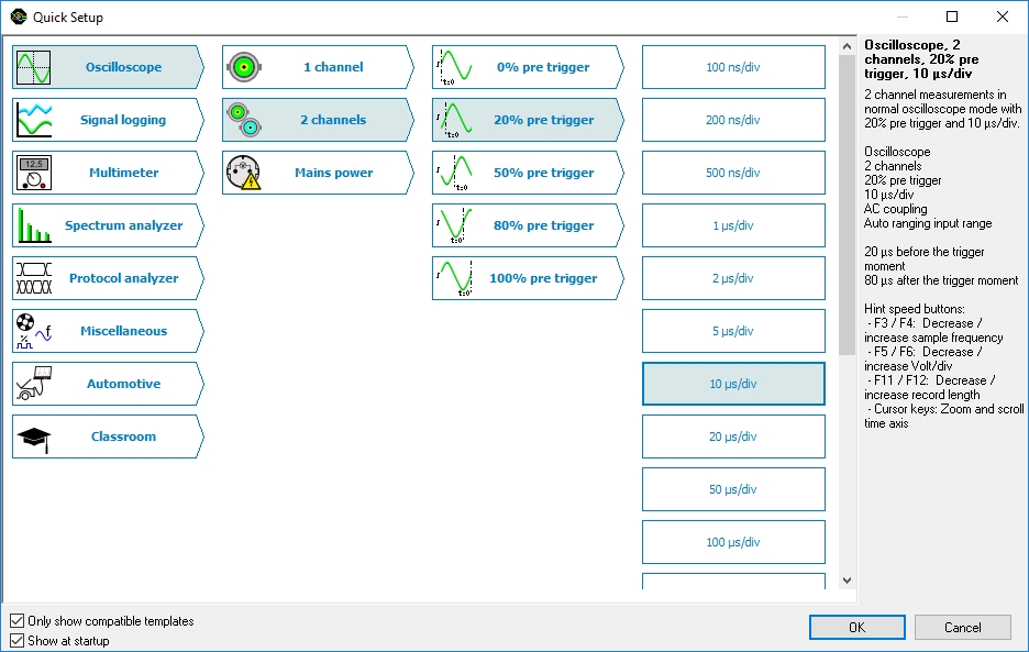?示波器 ?頻譜分析儀 ?數(shù)據(jù)記錄儀 ?萬用表 ?任意波形發(fā)生器 ?協(xié)議分析器 要在您自己的軟件或第三方軟件中使用 TiePie 工程儀器,請(qǐng)?jiān)L問軟件開發(fā)工具包二次開發(fā)頁面。 快速設(shè)置
