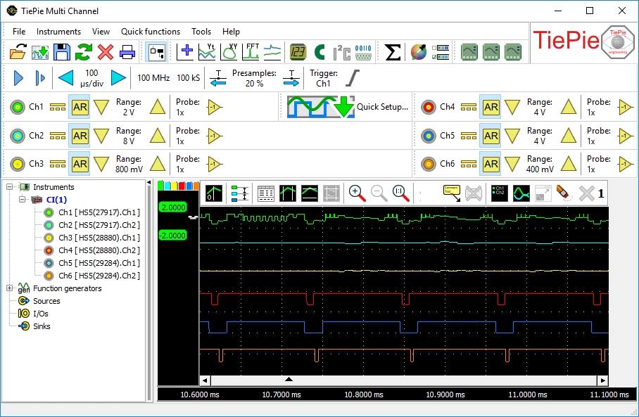 多通道示波器軟件結(jié)合Tiepie硬件可用作: