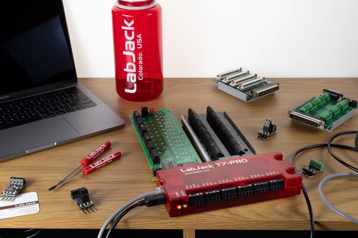 具有14個儀器放大模擬輸入、軟件可選增益設(shè)置、數(shù)十個數(shù)字I/O功能和Modbus TCP前端,是我們最通用的多功能DAQ平臺。常見的應(yīng)用包括實驗室研究、工業(yè)控制和監(jiān)控、自動化測試和原型開發(fā)。此外,T7設(shè)備能夠通過運行Lua腳本進行獨立操作。