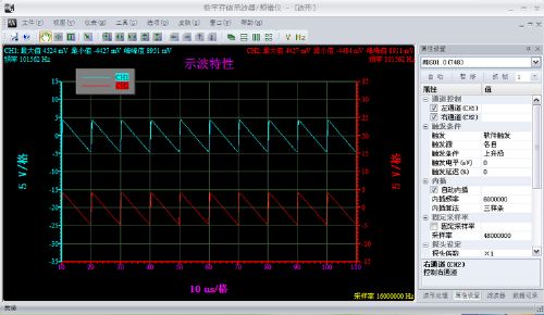 6、通過軟件界面進(jìn)行各種切換操作;(時(shí)間,刻度,電壓刻度,關(guān)閉與開啟通道等);