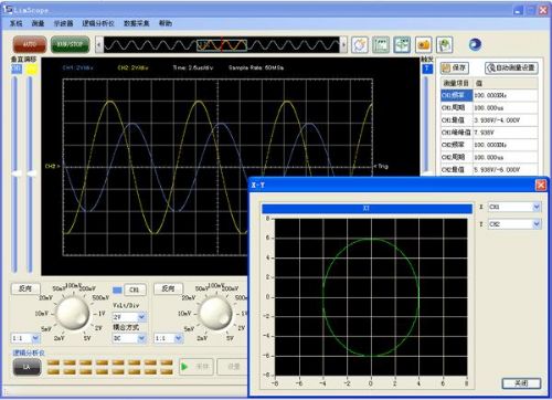 60M帶寬數(shù)字示波器。實(shí)時采樣率200MSa/s,全速USB2.0接口,支持X-Y方式顯示。