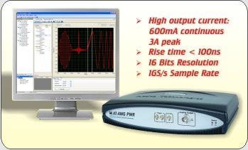 AT-AWG PWR是世界上最快的波形發(fā)生器,具有大電流輸出功能(600 mA連續(xù) – 3A 峰值)和高采樣率及高垂直分辨率(16 位)。