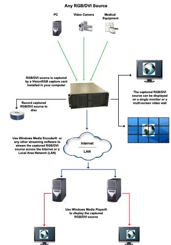 可使用DMA拷貝到主機(jī)系統(tǒng)進(jìn)行顯示,存儲或流傳輸。只要 RGB或DVI 數(shù)據(jù)在非Datapath圖形卡上顯示, Vision RGB-X2就會把數(shù)據(jù)發(fā)送到系統(tǒng)內(nèi)存上, 然后操作系統(tǒng)將數(shù)據(jù)拷貝到顯示器上.在使用Datapath 圖形卡時, Vision RGB-X2 直接傳輸數(shù)據(jù)到圖形卡從而增強(qiáng)性能。Vision RGB-X2將采集的數(shù)據(jù)部分發(fā)送到每一個視頻通道,并指示每個通道使用其圖形引擎更新發(fā)送數(shù)據(jù). 這樣就利用硬件大大提高了性能。英國Datapath公司的VisionRGB- X2卡是一款應(yīng)用于實時采集模擬或DVI源的理想解決方案。其典型的應(yīng)用包括: