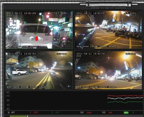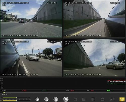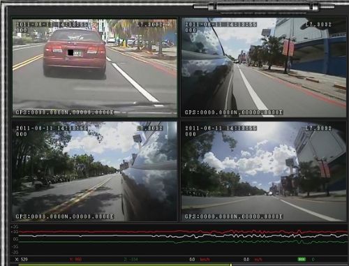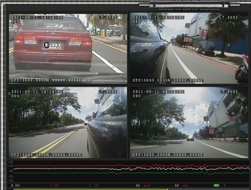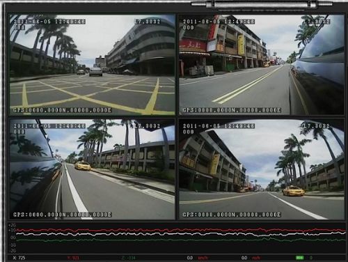 a、一路攝像頭①觀看車輛前視方向,記錄車輛行駛速度、制動、路面、交通信號、行車等情況;