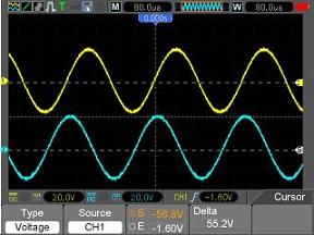 手動模式:光標間的電壓差△V; 光標間的時間差△T; △T的倒數(shù),以Hz為單位(1/△T)