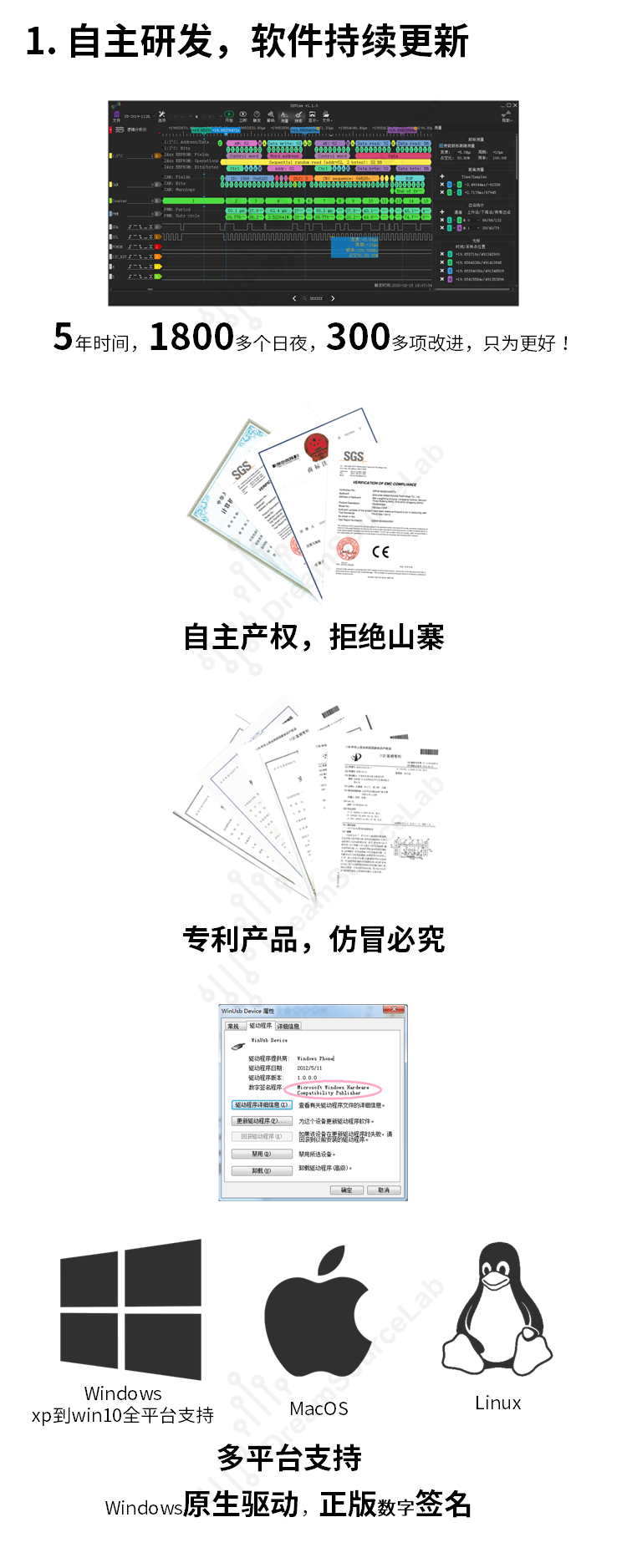 100MHz~~1000MHz采樣,16~32通道,最大256MB存儲(chǔ)/每通道,帶寬30MHz~250MHz,支持30種協(xié)議分析