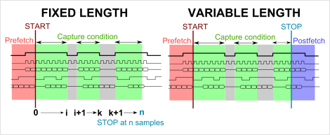Variable length trigger does not define a capture length, but a STOP condition and optionally a POSTFETCH length.