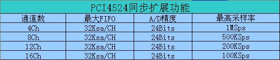 PCI4524支持多卡同步,組建8CH 12CH 16CH數(shù)據(jù)采集系統(tǒng),多卡系統(tǒng)指標(biāo)如下