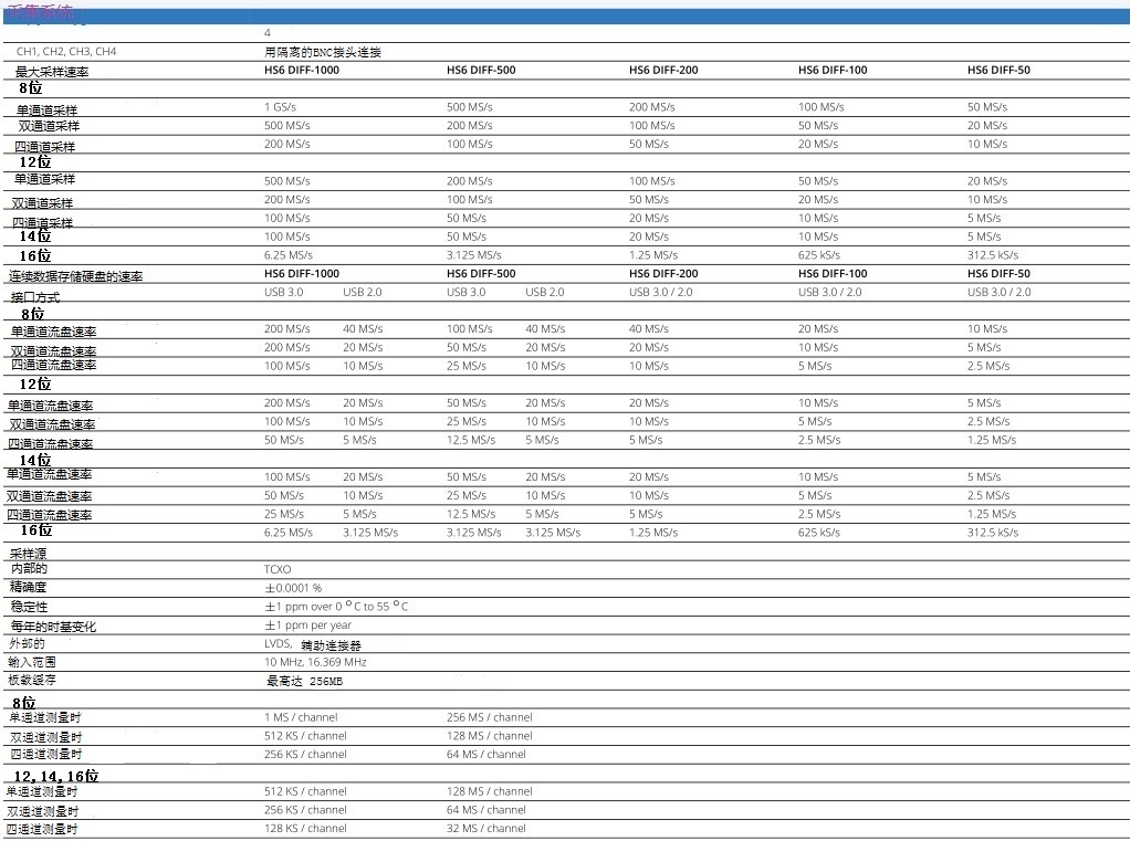 | HS6-1000xm | USB2.0/3.0 | 4 | 8~16位 | 6.25~200MHz | 64~256MB | 19800元 |