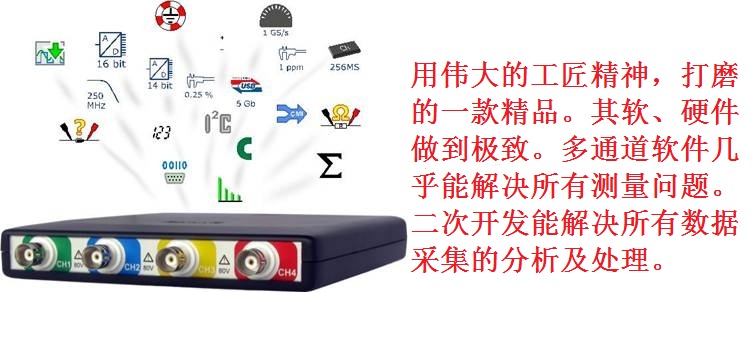 | HS4-5MHz USB | 4 | 12位分辨率時:四通道5 MS/s 14位分辨率時:四通道3.125 MS/s 16位分辨率時:四通道195KS/s | 12/14位時:四通道500/480KS/s 16位時:四通道195KS/s |