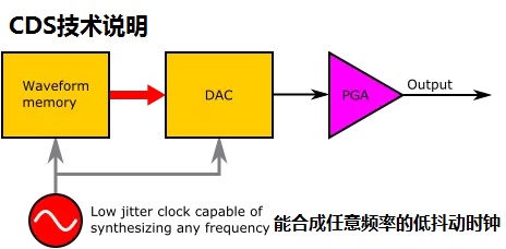 WS5和HS5任意波形發(fā)生器中所采用的CDS技術(shù)優(yōu)于近幾十年來傳統(tǒng)的直接數(shù)字合成(DDS)技術(shù)。DDS在產(chǎn)生低頻信號時存在抖動大、總諧波失真大等缺點(diǎn)。CDS消除了這些缺點(diǎn),使工程師用上高精度和以前無法負(fù)擔(dān)價格的任意波形發(fā)生器。